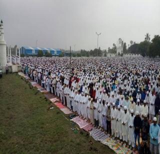 मालेगावमध्ये शहराच्या मुख्य ईदगाह येथे मौलाना मुफ्ती मोहंमद इस्माईल यांच्या नेतृत्वाखाली मुस्लिम बांधवांनी सोमवारी सकाळी साडेनऊच्या सुमारास नमाज अदा केली. यावेळी राष्ट्रीय एकात्मता समिती व शांतता समितीच्यावतीने मुफ्ती मोहंमद इस्माईल यांचा जिल्हा पोलीस प्रमुख संजय दराडे, अपर जिल्हाधिकारी दिलीप स्वामी, अपर पोलीस अधीक्षक हर्ष पोद्दार, प्रांताधिकारी अजय मोरे यांच्या वतीने सत्कार करण्यात आला. यावेळी मनपा आयुक्त संगीता धायगुडे, तहसीलदार सुरेश कोळी, कृषी उत्पन्न बाजार समितीचे सभापती प्रसाद हिरे, केवळ हिरे, निखिल पवार, डॉ राजेंद्र ठाकरे, रियाज अन्सारी यांच्यासह समितीचे सदस्यांनी मुस्लिम बांधवांना ईदच्या शुभेच्छा दिल्या.