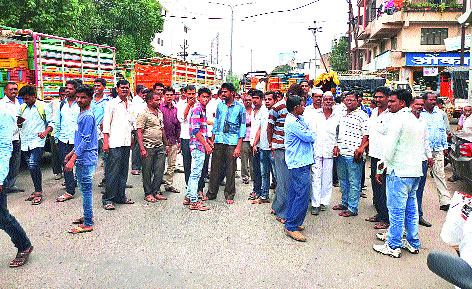 शुक्रवारी दुपारी (दि.६) सव्वा वाजता इगतपुरी तालुक्यातील भरवीर येथील पन्नास ते साठ शेतकरी नेहेमीप्रमाणे नाशिक कृषी उत्पन्न बाजार समितीत शेतमाल विक्रीसाठी आणत असताना आडगाव नाक्यावरून वाहतूक पोलिसांनी पिकअपचा पाठलाग केला व क्षमतेपेक्षा जास्त शेतमाल वाहनात भरलेला असून, टपावर शेतकरी बसलेले असल्याने कारवाई टाळण्यासाठी पैशांची मागणी केली पैसे दिले नाही म्हणून वाहतूक पोलिसांनी बाजार समिती प्रवेशद्वारावर अडवून एकनाथ झनकर या शेतकºयांच्या पिकअप (क्रमांक एम. एच. १५ बीजे ७०२८) चावी काढून घेतली त्यानंतर संतप्त झालेल्या पन्नास ते साठ शेतकºयांनी पालेभाज्या वाहने रस्त्यात उभी करून काहीकाळ चक्काजाम आंदोलन केले. चक्काजाममुळे दिंडोरीनाका ते पेठफाटा दरम्यान काहीकाळ वाहतूक कोंडी निर्माण झाली होती. शेतकºयांनी चक्काजाम केल्याची माहिती मिळताच वाहतूक शाखेचे पोलीस निरीक्षक सदानंद इनामदार, पंचवटी पोलीस ठाण्याचे वरिष्ठ पोलीस निरीक्षक दिनेश बर्डेकर, शिवाजी आव्हाड, नवले आदिंनी तत्काळ घटनास्थळी धाव घेऊन शेतकºयांची समजूत काढली .