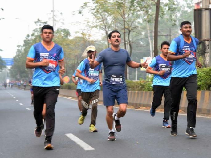 नाशिक : लोकमत नाशिक महामॅरेथॉन स्पर्धेत शहराचे तरूण तडफदार पोलीस आयुक्त विश्वास विश्वास नांगरे पाटील हे त्यांच्या काही पोलीस सहकाऱ्यांसमवेत सहभागी झाले होते. भल्यापहाटे बोचºया थंडीत नांगरे पाटील यांनी ईदगाह मैदानावर हजेरी लावली. २१ कि.मीच्या धावपटूंना ध्वज दाखविल्यानंतर स्वत: नांगरे पाटील यांनी ‘स्टार्ट लाईन’वर येत ‘पोझिशन’ घेतली. तत्पुर्वी त्यांनी वॉर्मअप करून स्वत:ला ‘रेडी’ के ले होते. त्यांचा वॉर्मअपदेखील उपस्थित तरूण धावपटूंचे लक्ष वेधून गेला. काउन्ट डाऊन पूर्ण होताच स्टार्ट लाईनच्या घड्याळात ६:४० वाजताच नांगरे पाटील यांनी जोरदार धाव घेतली. धावताना नांगरे पाटील अन्य धावपटूंनाही हात उंचावत ‘चिअरअप’ क रताना दिसून आले. त्यांनी अवघ्या ५७ मिनिट २१ सेकंदात १० कि.मीचा रन पूर्ण करत ‘फिनिश लाईन’ गाठली.ंमहामॅरेथॉनसारख्या स्पर्धांकडे नांगरे पाटील यांचा बघण्याचा दृष्टीकोन फारच प्रेरणादायी आहे. ते म्हणतात, की या स्पर्धा माणसाच्या उर्जामापक ठरतात. त्यामुळे अशा स्पर्धांमधून नेहमीच माणसाला त्याची उर्जा किती आहे, याचा कयास बांधता येतो. आजच्या धकाधकीच्या जीवनात आरोग्याकडे लक्ष देण्यास फारसा वेळ नागरिकांना मिळत नाही. त्यामुळे स्थुलता, थकवा, ताणतणावाचा सामना चक्क तरूणाईदेखील करताना दिसून येते. परिणामी महामॅरेथॉनसारख्या स्पर्धा प्रोत्साहन देणा-या ठरतात अन् अशा स्पर्धेत जेव्हा नांगरे पाटील यांच्यासारखे आयपीएस व्यक्तीमत्त्वाकडून सहभागी होत धाव घेतली जाते तेव्हा ती स्पर्धा तरूणाईला खूप काही शिकवून जाते, हे नाशिकच्या महामॅरेथॉनमधून नक्कीच पहावयास मिळाले.