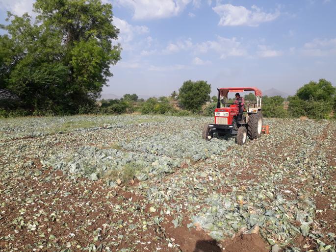 शेतकऱ्याने कोबीवर फिरवला रोटर