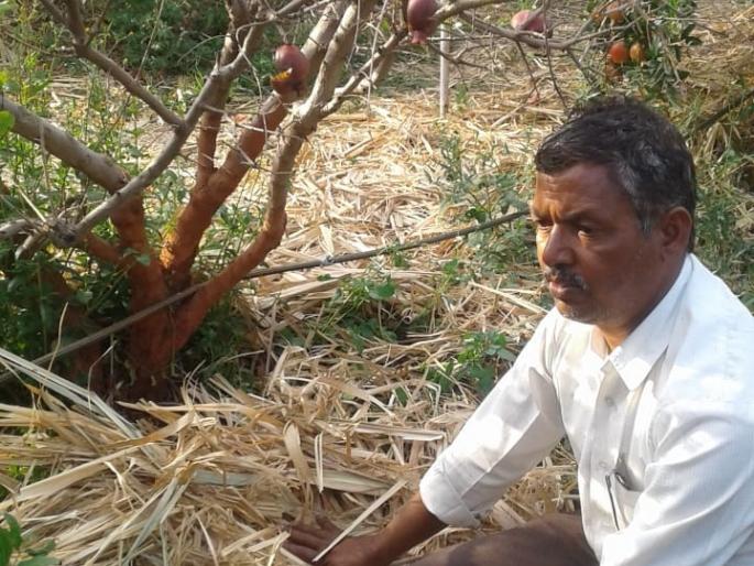 तीन एकर डाळिंब बाग असून या भागात उन्हाचे प्रमाण वाढले आहे.मुबलक पाणी नसल्याने बागा सुकून चालल्या आहेत .झाडांच्या बुडांना गारवा राहावा म्हणून उसाचे पाचट विकत आणून झाडांच्या बुडांना आच्छादन केले आहे त्यामुळे गारवा टिकून राहात आहे.रामदास दौंडे,संतोष दौंडे डाळिंब उत्पादक शेतकरी दहेगाव पाटोदा