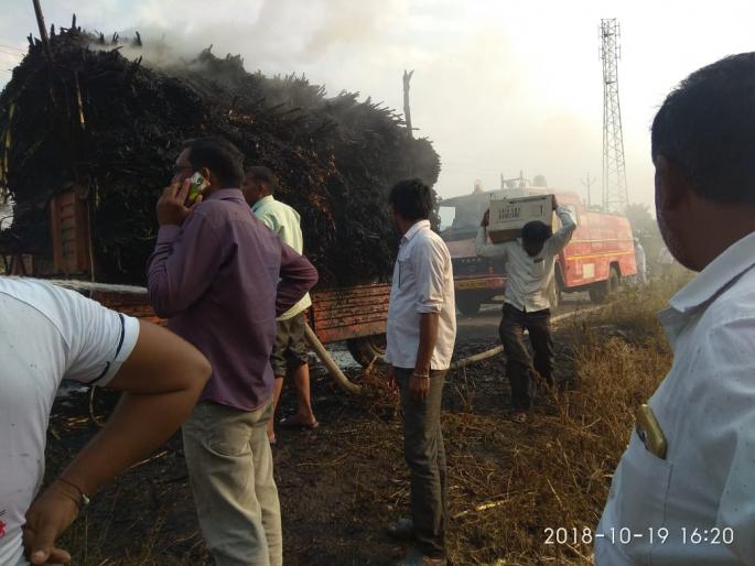 दुष्काळाच्या पाशर््वभूमीवर जनावरे जगली पाहिजे या हेतूने सुमारे ५५हजार रु पये किंमतीच वाळलेला चारा विकत घेऊन मातुलठाण कडून राजापूर कडे जात असताना शोर्ट सिर्कट मुळे हा चारा आगीच्या भक्षस्थानी पडला आहे.