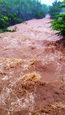 पेठ : मंगळवार सकाळपासून पेठ तालुक्यात सुरू असलेल्या मुसळधार पावसामुळे जनजीवन विस्कळीत झाले असून, नाशिक-पेठ महामार्ग वगळता सर्व रस्ते बंद पडल्याने जवळपास निम्म्या तालुक्याचा संपर्क तुटला आहे.मंगळवारी सकाळपासूनच मुसळधार पावसाने सुरु वात केल्याने पेठ -जोगमोडी रस्त्यावर संगमेश्वरनजीक पुलावर पाणी आल्याने जवळपास पूर्वेकडील निम्म्या तालुक्याचा पेठशी संपर्क तुटला, तर उस्थळेजवळ नदीला मोठा पूर आल्याने उस्थळे, हनुमंतपाडा, हेदपाडा, एकदरेकडील वाहने व नागरिक अडकून पडले. दिवसभर झालेल्या अतिवृष्टीने संपूर्ण तालुका जलमय झाला.भुवन घाट वाहतुकीसाठी बंदपेठच्या पश्चिमेकडील भुवन घाटात दोन-तीन ठिकाणी दगड-माती रस्त्यावर आल्याने घाटाखालील भुवन, आंबापाणी, खडकी, खामशेत, बोरपाडा, धानपाडा आदि पंधरा ते वीस गावांची या रस्त्यावरील वाहतूक खोळंबली असून, पेठला येण्यासाठी आडगाव मार्गे वळसा घालून यावे लागत आहे.पेरण्या जोमाने सुरूनांदगाव : तालुक्यात पेरण्या जोमाने सुरू असून, या आठवड्यात १०० टक्के पेरण्या पूर्ण होतील, अशी माहिती तालुका कृषी अधिकारी अशोक कुळधर यांनी दिली. दि. ११ जुलैपर्यंत तालुक्याची पर्जन्य सरासरी १४२ मि.मी. आहे. नांदगाव मंडूलात २२१ मि.मी. व मनमाड मंडलात १५० मि.मी. पर्जन्याची नोंद झाली आहे. यंदा कापसाचे क्षेत्र कमी (९६३९ हे.) झाले आहे. कृषी विभागाच्या आंतरपीक प्रचाराला यश आले असून, कडधान्याची (तूर, मूग, उडीद) तीन हजार हेक्टर क्षेत्रावर पेरणी झाली आहे. मक्याच्या क्षेत्रात काहीशी वाढ झाली असून, २८,५०० हेक्टर मका क्षेत्र आहे. बाजरी १६,००० हेक्टर, तर भुईमूग १००० हेक्टर आहे. यंदाचे एकूण पेरणी उद्दिष्ट ५८,५०० हेक्टर ठरविण्यात आले असल्याची माहिती कुळधर यांनी दिली. मनमाड विभागात उशिरा पाऊस सुरू झाल्याने तेथील पेरणीची कामे उशिरा सुरू झाली आहेत. तालुक्याच्या पूर्व भागात जातेगाव व वेहेळगाव परिसरात पर्जन्यमान तुलनेने अधिक आहे. (लोकमत ब्युरो)