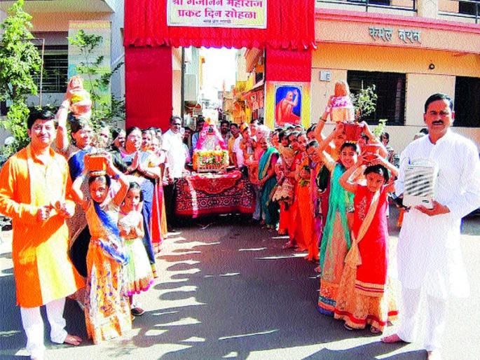 सिडको : श्री गजानन महाराज भक्तमंडळ मुरारीनगर अंबड यांच्या वतीने सालाबादप्रमाणे यावर्षी ही गजानन महाराज प्रगट दिनानिमित्त धार्मिक सोहळ्याचे आयोजन करण्यात आले होते. पहाटे प्रथम गजानन महाराज भक्त मंडळाचे अध्यक्ष अमोल शेळके व भाग्यश्री शेळके यांनी मुरारीनगर येथील पालखी तळावर गजानन महाराजांच्या मूर्तीला सप्तनिक अभिषेक केला.सावतानगर येथील इच्छामणी गणपती मंदिरात गजानन महाराज प्रकटदिन सोहळ्याचा चित्रमय प्रसंग साकारण्यात आला . यावेळी जगताप यांनी गजानन विजय या ग्रंथाच्या अध्यायाचे वाचन केले. यावेळी जमलेल्या भक्तांनी गजानन महाराज की जय म्हणत दर्शनासाठी गर्दी केली. यावेळी शेगाव येथून आलेल्या भजनी मंडळाने गण गण गणांत बोते या सह चला शेंगावाला जाऊ, गाडी घुंगराची निघाली शेंगावाला अशी अनेक महाप्रसादाचे देण्यात आले. दुपारी सावतानगर येथून श्री गजानन महाराजांच्या पालखीची भव्य मिरवणूक काढण्यात आली मिरवणुकीच्या मार्गावर पाण्याचे फवारे मारण्यात आले होते सर्व पालखी मार्ग स्वच्छ करण्यात आला होता पालखी मार्गावर ठिकठिकाणी रांगोळ्या काढण्यात येत होत्या सर्वत्र भगवे ध्वज लावल्यामुळे वातावरण भक्तिमय झाले होते. संध्याकाळी पालखीचे डीजीपीनगर येथील माउली लॉन्स चौकात फटाक्यांच्या आतषबाजीत सर्व पक्षीय व विविध संस्था व मंडळांच्या वतीने स्वागत करण्यात आले.