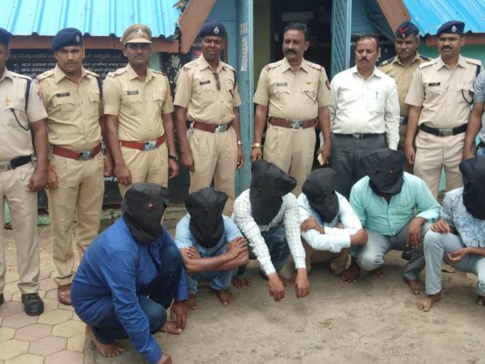 मनमाड रेल्वेस्थानकात धावत्या गाडीत चोरी करणाºया सहा आरोपींसमवेत लोहमार्ग पोलीस ठाण्याचे पोलीस निरीक्षक एन.के. मदने यांच्यासह अधिकारी व कर्मचारी.