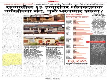 ‘लोकमत’ने १३ जून २१०९ रोजी उत्तर महाराष्ट्रासह मराठवाडा, विदर्भ, कोकण व पश्चिम महाराष्ट्रातील धोकादायक शाळांचे जिल्हानिहाय सर्वेक्षण प्रसिद्ध केले होते.