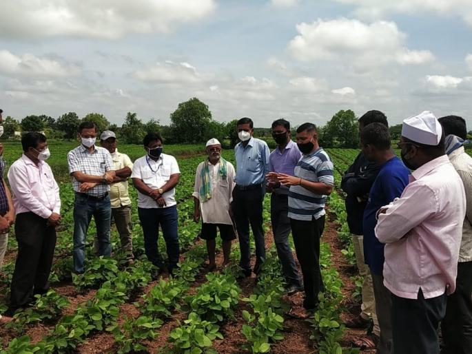 शेतक-यांच्या संजीवनी गट, नाशिक कृषी विज्ञान केंद्र व कृषी विभाग यांच्या संयुक्त विद्यमाने बी. बी. एफ. तंत्रज्ञानद्वारे सोयाबीन वानाच्या पेरणीचे प्रात्यक्षिक दाखविण्यात आले. मोह येथील शेतकरी अरु ण भिसे यांच्या शेतावर हे प्रात्यक्षिक आयोजित करण्यात आले होते. यावेळी निफाडचे उपविभागीय कृषी अधिकारी गोकुळ वाघ, तालुका कृषी अधिकारी ए. एच. गागरे, कृषी विज्ञान केंद्र नाशिकचे डॉ. प्रकाश कदम, डॉ. राजाराम पाटील यांनी शेतकऱ्यांना पेरणी पूर्व मशागत, ऊगवण,फवारणी,काढणी-मळणी व विक्र ी आदी विषयांवर मार्गदर्शन केले. तसेच यावेळी उगवण झालेल्या सोयाबीनच्या शेतात जाऊन शेतकºयांना अनेक उपाययोजना सांगितल्या.यावेळी मंडळ कृषि अधिकारी महेश वेठेकर, मोहचे सरपंच सोमनाथ बोडके, संजीवनी शेतकरी बचत गटाचे अध्यक्ष सुनील भिसे , रामदास भिसे, किरण बोराडे, भारत बोडके, पांडुरंग भिसे, भगवान झाडे, संदीप भिसे, गोरख भिसे आदी उपस्थित होते.