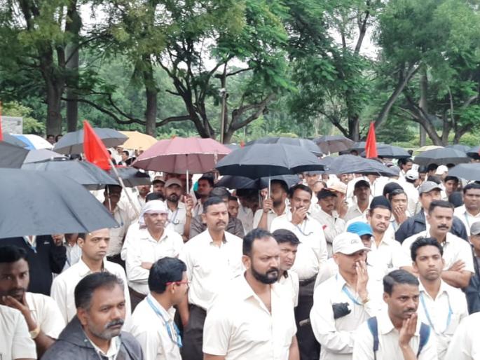 ठळक मुद्देओझरटाऊनशिप : कामगारांची भरपावसात दिवसभर घोषणाबाजी