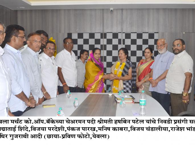 येवला मर्चंट को-आॅप बँकेच्या चेअरमनपदी हर्षाबेन पटेल यांची निवड झाली. सहाय्यक निबंधक तथा निवडणूक निर्णय अधिकारी एकनाथ पाटील यांच्या अध्यक्षतेखाली चेअरमन पदाच्या निवडीसाठी सभा संपन्न झाली.