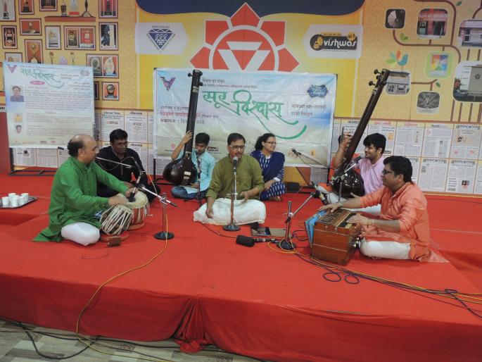 नाशिक : शास्त्रीय संगीत ते भक्तिसंगीत अशा सुमधुर आणि प्रयोगशील स्वरांची मेजवानी सकाळच्या प्रसन्न काळी रसिकांना अनुभवण्यास मिळाली. निमित्त होते सूरविश्वास मैफलीत सुप्रसिद्ध गायक पं. मकरंद हिंगणे यांचे गायन. सूरविश्वासचे सहावे पुष्प त्यांनी गुंफले.सावरकरनगर येथील विश्वास हब येथे हा कार्यक्र म संपन्न झाला. नव्या पिढीतील कलाकारांच्या आविष्काराला हक्काचे व्यासपीठ देण्यासाठी ‘सूर विश्वास’ हा अनोखा उपक्र म सुरू करण्यात आला आहे. मैफलीची सुरुवात आज बधाई बाजे... घनश्याम कृष्णाच्या जन्मानंतर गोकुळात श्रावण मेघांनी आच्छादित वातावरणात जणू सूर्योदय झाला. नंद यशोदेचे सगळे अभिनंदन करू लागले. हा हर्षोल्लास सालगवराली रागाच्या स्वरांनी श्रोत्यांसमोर साकारला. काहीशा अनवट दक्षिण भारतीय संगीतातील या रागानंतर ‘दरस बिन सुनो’ ही बंदिश सादर केली आणि वातावरणात स्वरांनी रिमझिमच जणू सुरू झाली. त्यानंतर ‘रंध्रात पेरिली मी आषाढ दर्द गाणी’ हे पं.जितेंद्र अभिषेकी यांनी गायलेली प्रसिद्ध स्वरचना सादर केली. त्यानंतरच्या ‘आम्हा न कळे ज्ञान’ या चोखोबांच्या रचनेने आणि ‘अवघे गरजे पंढरपूर’ या भक्तिगीताने सभागृह भक्तिमय झाले. कार्यक्रमात संवादिनीवर आनंद अत्रे, तबल्यावर नितीन पवार, सुखदा बेहेरे, केतन इनामदार, अजिंक्य जोशी, शुभंकर हिंगणे, अमोल पाळेकर यांनी साथसंगत केली. कार्यक्र माचे सूत्रसंचालन डॉ. स्मिता मालपुरे यांनी केले. कुसुमाग्रज प्रतिष्ठानवर विश्वस्तपदी निवड झाल्याबद्दल अॅड. अजय निकम यांचा सन्मान विश्वास ठाकूर यांनी केला. आभार प्रदर्शन विनायक रानडे यांनी केले.