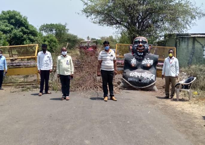 दिंडोरी : कोरोनाच्या पार्श्वभूमीवर जानोरी ग्रामपंचायतीनेही शिवार रस्ते बंद करून कोरोनाचा प्रतीकात्मक पुतळा तयार करून ‘मी कोरोना...घरी थांबाना’ असे नागरिकांना आवाहन केले आहे.