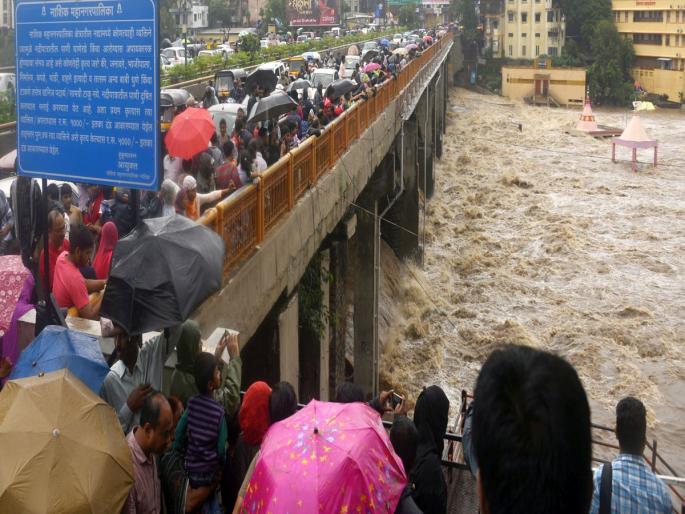 सोमवारी दुपारी दोन वाजेपासून धरणातून पाण्याचा विसर्ग करण्यास सुरुवात झाली. पहिल्या टप्प्यात एक हजार क्यूसेक पाणी गोदावरी नदीपात्रात सोडण्यात आले. त्यानंतर टप्प्याटप्प्याने विसर्ग वाढविण्यात आल्यामुळे सायंकाळपर्यंत पारंपरिक पर्जन्यमापक असलेल्या दुतोंड्या मारुतीची मूर्ती कमरेपर्यंत बुडाली. सायंकाळी सहा वाजता ६ हजार ५०० क्यूसेकपर्यंत विसर्ग वाढविण्यात आल्याने गोदावरी नदीला या हंगामातील पहिला पूर आला. सोमवारी रात्री आठ वाजेपासून ७ हजार ८३३ क्युसेकपर्यंत विसर्ग वाढविला गेला. मंगळवारी (दि.३०) दुपारी दोन वाजता एक हजाराने वाढ करण्यात येऊन विसर्ग ८ हजार ८३३ क्युसेकपर्यंत पाणी धरणातून सोडले जात आहे. शहरातदेखील संततधार सकाळपासून सुरू असल्यामुळे अहल्यादेवी होळकर पूलाखालून पुढे रामकुंडात ११ हजार २१० क्युसेक इतके पाणी प्रवाहित आहे. त्यामुळे गोदावरीने धोक्याची पातळी गाठली असून नदीकाठाच्या गावांना सतर्कतेचा इशारा देण्यात आला आहे. सायखेडा, चांदोरी या भागातदेखील गोदावरीची पातळी वाढली असून सायखेड्याच्या धोकादायक पुलाला पूराचे पाणी लागले आहे. तसेच गोदाकाठावरील दुतोंड्या मारूतीच्या मुर्तीच्या छातीपर्यंत पाणी लागले आहे. नारोशंकर मंदिराजवळ असलेल्या रामसेतू पुलाला पाणी लागले आहे. या पूलावरूनही प्रवेश बंद करण्यात आला आहे. पूर बघण्यासाठी नागरिकांनी मोठ्या पूलांवर गर्दी करू नये असे आवाहन करण्यात आले आहे.