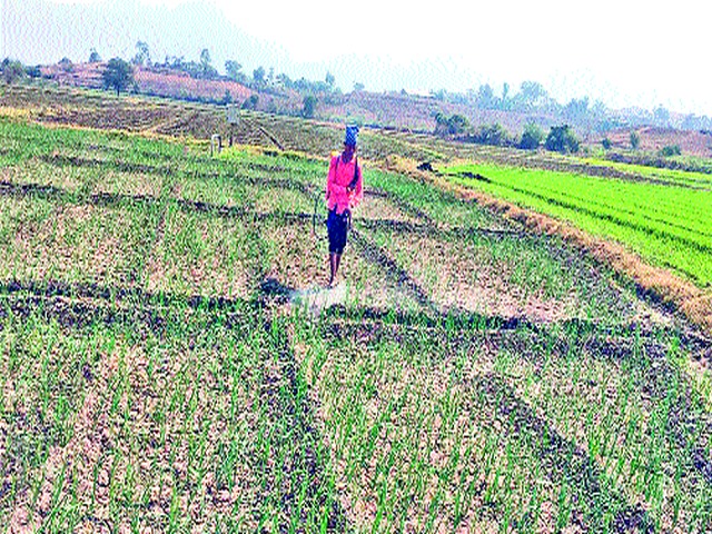 बागलाण तालुक्याच्या पश्चिम पट्ट्यात मोठ्या प्रमाणात कांदा लागवड केली जात असून, यावर्षी चांगला पाऊस झाल्याने शेतकऱ्यांचा कांदा लागवडीकडे कल वाढला आहे; मात्र ढगाळ हवामानामुळे कांदा खराब होत असून, महागडी औषधांची फवारणी करून कांदा वाचविण्याच्या प्रयत्नात बळीराजा दिसत आहे.