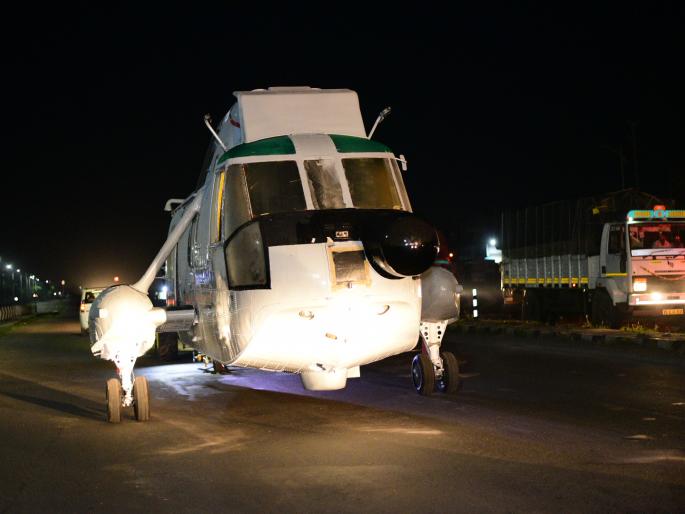भारतीय नौदलाच्या संपर्क कक्षाचे कमांडर ऑफिसर यांच्या नियंत्रणाखाली मंगळवारी (दि. १९) रात्री १० वाजता ओझर विमानतळावरून देवळाली स्कूल ऑफ आर्टिलरीच्या दिशेने ट्रॅक्टरच्या टाेइंगद्वारे नेले गेले. यावेळी ओझर विमानतळ येथून निघालेले हे हेलिकॉप्टर जानोरी रस्त्याने मुंबई-आग्रा राष्ट्रीय महामार्गावर आले. तेथून द्वारकेमार्गे मुंबईनाका, राणेनगर येथून पाथर्डीफाट्यावरून देवळाली-वडनेर रस्त्याने मिलिटरी फार्म लॅमरोड देवळाली येथील स्कूल ऑफ आर्टिलरी येथे पोहोचले.