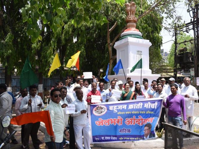 नाशिक : देशातील संविधान व लोकशाही वाचविण्यासाठी इलेक्ट्रॉनिक व्होटिंग मशीन (इव्हीएम) वर बंदी आणावी यासाठी बहुजन क्रांती मोर्चातर्फे मंगळवारी (दि.३०) ‘इव्हीएम हटाव, देश बचाओ’चा नारा देत अशोकस्तंभ परिसरात जेलभरो आंदोलन करण्यात आले.