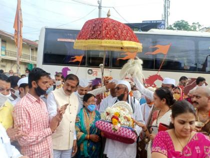 नाशिक : राज्यासह संपुर्ण देश आणि जग सध्या कोरोना या महामारीचा मुकाबला करत आहेत. याच पार्श्वभूमीवर वारकरी संप्रदायाने सामाजिक भान जपत आषाढी एकादशीच्या मुहूर्तावर नाशिक जिल्ह्यातील श्री क्षेत्र त्र्यंबकेश्वरमधून संतश्रेष्ठ श्री निवृत्तीनाथ महाराजांच्या पादूकांची पालखी थेट ‘शिवाशाही’ बसमधून पंढरपूरात नेण्याचा निर्णय घेतला. मंगळवारी सकाळी साडेदहा वाजता २० वारकरी भक्त टाळ-मृदुंगांच्या गजरात पालखीला घेऊन बस त्र्यंबकमधून पंढरपूराच्या दिशेने रवाना झाली. ‘आतापर्यंत आम्ही संत निवृत्तीनाथ महाराज अन् विठूरायांच्या भक्तांची वाहतूक केली; मात्र आज चक्क देवाचे सारथ्य करण्याचा योग लाभला’’ अशी भावना बसच्या दोघा चालकांनी व्यक्त करत विठूनामाचा जयघोष केला.
