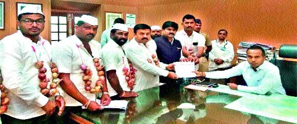 बेमुदत कांदा खरेदी बंद केली आहे. यामुळे जिल्ह्यातील कांदा उत्पादक शेतकरी अडचणीत सापडला असल्याने कांदा खरेदी पूर्ववत सुरू करावी या मागणीसाठी शिवसेनेचे खासदार हेमंत गोडसे व जिल्हाप्रमुख भाऊलाल तांबडे यांच्या नेतृत्वाखाली जिल्हाधिकारी राधाकृष्णन बी यांना निवेदन देण्यात आले.