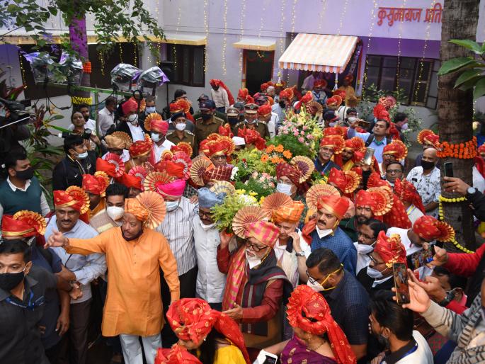 शुक्रवारी (दि. ३) सकाळी ९ वाजता टिकळवाडीतील तात्यासाहेबांच्या निवासस्थानी पालखी पूजन करून ग्रंथदिंडीला प्रारंभ झाला. तत्पूर्वी शहरातील विविध भागांतून नवरंगांची उधळण करत दिंडी कुसुमाग्रज स्मारकात दाखल झाल्या होत्या. साहित्य महामंडळाचे अध्यक्ष कौतिकराव ठाले-पाटील, कार्याध्यक्ष दादा गोरे, स्वागताध्यक्ष छगन भुजबळ, निमंत्रक जयप्रकाश जातेगावकर, महापौर सतीश कुलकर्णी, कृषिमंत्री दादा भुसे, विधानसभेचे प्रभारी अध्यक्ष नरहरी झिरवाळ, खासदार श्रीनिवास पाटील, आमदार हिरामण खोसकर, माजी खासदार समीर भुजबळ, माजी आमदार हेमंत टकले, विश्वास ठाकूर यांनी पालखीचे पूजन केले.
