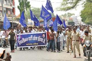मालेगाव : गेल्या तीन महिन्यांत राज्यासह देशभरात झालेल्या विविध घटनांबाबत दलित समाजास न्याय मिळावा या मागणीसाठी रिपब्लिकन पार्टी आॅफ इंडियाच्या मालेगाव शाखेतर्फे येथील प्रांत कार्यालयावर मोर्चा काढण्यात आला. मोर्चेकर्यांतर्फे नायब तहसीलदार संजय तराळकर यांना आपल्या मागण्यांचे निवेदन देण्यात आले. रिपब्लिकन पार्टी आॅफ इंडियाचे नाशिक जिल्हा ग्रामीण अध्यक्ष दीपक निकम यांच्या नेतृत्वाखाली मोसमपूल महात्मा गांधी पुतळ्यापासून मोर्चास प्रारंभ करण्यात आला. कॅम्परस्त्याने सदर मोर्चा प्रांत कार्यालय येथे आला. नायब तहसीलदार तराळकर यांना मोर्चेकर्यांनी आपल्या मागणीचे निवेदन दिले. गेल्या काही महिन्यांत राज्यासह देशभरात दलितविरोधी काही घटना घडामोडी घडल्या. त्यात प्रामुख्याने नगर जिल्ह्यात या घटना अधिक आहेत. तेथे एका दलित तरुणाचा खून करण्यात आला, मातंग समाजातील लोकांना स्मशानभूमीत अंत्यविधी करण्यास मज्जाव करण्यात आला. योगगुरु रामेदव बाबा यांनी आक्षेपार्ह विधान केले. तालुक्यातील हिसवाळ व दसाने येथेदेखील दलितविरोधी घटना घडल्या. या सर्व घटनांचा मोर्चेकर्यांच्या वतीने निषेध करण्यात येत आहे. तसेच असे प्रकार पुन्हा होऊ नयेत म्हणून कठोर कायदे करावेत, नगर जिल्ह्यातील खुनाचा निकाल लवकरात लवकर लावण्यासाठी फास्ट ट्रॅक न्यायालय स्थापन करावे आदि मागण्या निवेदनाद्वारे करण्यात आल्या आहेत. यावेळी रिपाइं (आठवले गट)चे खंडू उशिरे, शांताराम सोनवणे, दादाजी महाले, दीपक निकम, मंगेश निकम, साईनाथ निकम, राजू पवार, शक्ती सौदे आदिंसह कार्यकर्ते उपस्थित होते.