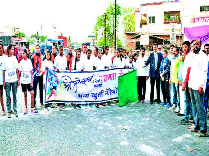 मनमाड : भारतीय घटनेचे शिल्पकार डॉ. बाबसाहेब आंबेडकर यांच्या जयंतीनिमित्त आयोजित करण्यात आलेल्या भीमोत्सव २०१८ उत्सवाचा शुभारंभ समता दौड मॅरेथॉन स्पर्धेने करण्यात आला. सेवानिवृत्त पोलीस अधीक्षक संजय अपरांती यांनी हिरवा झेंडा दाखवून स्पर्धेचे उद्घाटन केले. भीमोत्सव २०१८ या नावाने ११ एप्रिल ते २० एप्रिलपर्यंत भरगच्च कार्यक्रमांची आखणी करण्यात आली आहे. आज या उत्सवाची सुरुवात भव्य खुल्या मॅरेथॉन स्पर्धेने करण्यात आली. मालेगाव नाका चौफुली येथून मॅरेथॉन स्पर्धेला सुरुवात झाली.५ किमी अंतर असलेल्या या स्पर्धेत सात वर्षाच्या लहान मुलांपासून ते ७८ वर्षांच्या ज्येष्ठांपर्यंत स्पर्धक सहभागी झाले होते. या मॅरेथॉनचा एकात्मता चौकात समारोप करण्यात आला.श्याम वाघ, शिवानी दाभाडे प्रथममुलांमध्ये श्याम मधुकर वाघ (प्रथम), देवीदास दिनकर पवार (द्वितीय), श्रीकांत विक्रम शिंदे (तृतीय). मुलींमध्ये शिवानी मयाराम दाभाडे (प्रथम), सपना निवृत्ती आहेर (द्वितीय), वैष्णवी कचरू शिंदे (तृतीय) यांना पारितोषिक देऊन गौरविण्यात आले. मॅरेथॉन स्पर्धेचे संयोजन क्रीडाशिक्षकांनी केले होते.