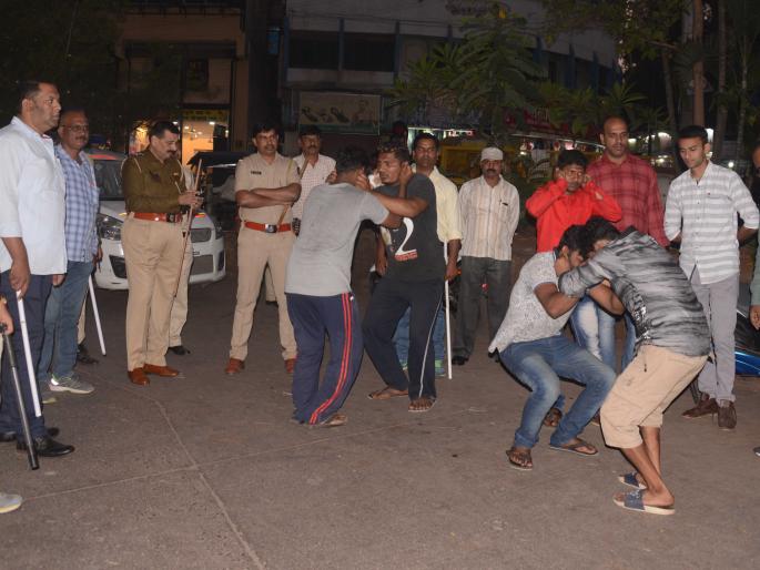 नेपाळी कॉर्नरवर तीन वर्षांपूर्वी झालेल्या प्राणघातक हल्ल्याप्रकरणी जिल्हा न्यायालयात सुरू असलेल्या सुनावणीत लाभात साक्ष देण्याच्या कारणावरून दोन गटात झालेल्या तुंबळ हाणामारी प्रकरणी भद्रकाली पोलिसांनी अटक केलेल्या संशयित दीपक खैरनार, ललित खैरनार, लंकेश खैरनार, शोएब अन्सारी व मोहम्मद अन्सारी यांची मंगळवारी (दि़१३) परिसरातून धिंड काढण्यात आली़ पोलिसांनी या संशयितांना भरचौकात उठबशा काढण्यास सांगून त्यांची दहशत मोडून काढली़