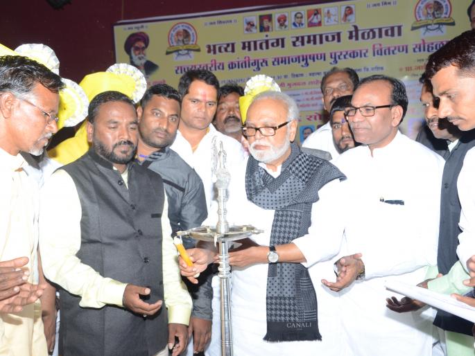 (फोटो ०३ मातंग मेळावा) दीपप्रज्वलन करताना उपस्थित मान्यवर.
