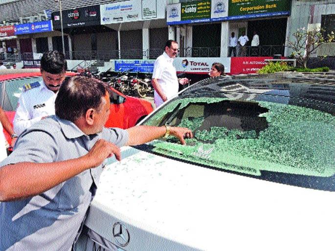 कोरेगाव भीमा येथील घटनेच्या निषेधार्थ बुधवारी महाराष्टÑ बंदचे आयोजन करण्यात आले होते यावेळी हा प्रकार घडला. राष्टÑवादीचे नेते आणि राज्याचे माजी अर्थमंत्री जयंत पाटील यांच्या मातोश्रींचे काही दिवसांपूर्वी निधन झाल्याने माजी खासदार देवीदास पिंगळे हे राष्टÑवादीचे जिल्हाध्यक्ष अॅड. रवींद्र पगार, अर्जुन टिळे व कॉँग्रेसचे माजी नगरसेवक लक्ष्मण मंडाले यांना बरोबर घेऊन सांत्वनासाठी गेले होते. पाटील यांच्याकडून निघाल्यानंतर ते तेथील माजी खासदार लक्ष्मणराव पाटील यांच्या प्रकृतीची विचारपूस करण्यासाठी गेले होते. तेथून परतल्यानंतर ते बंगळुरू हायवेवरील हॉटेलमध्ये गेले आणि रूममधून बॅग घेण्यासाठी गेले असताना खाली घोषणाबाजी आणि दगडफेकीचे आवाज आल्याने ते खाली उतरले तेव्हा लक्ष्मण मंडाले यांच्या पार्किंंगमध्ये उभ्या असलेल्या मर्सिडीज कार (क्र. एमएच १५, ईएस १०० ) वर दगडफेक केल्याने नुकसान झाले होते. काही क्षणातच पोलीस घटनास्थळी दाखल झाले आणि त्यांनी दगडफेक करणाºयांना ताब्यात घेतले. याप्रकरणी पिंगळे यांनी पोलिसांत तक्रारही दाखल केली आहे. या घटनेनंतर पिंगळे हे विमानाने साताºयावरून पुण्याला आणि पुण्याहून मुंबईला दाखल झाले. उर्वरित पदाधिकारी मोटारीने नाशिकला परतले आहेत.