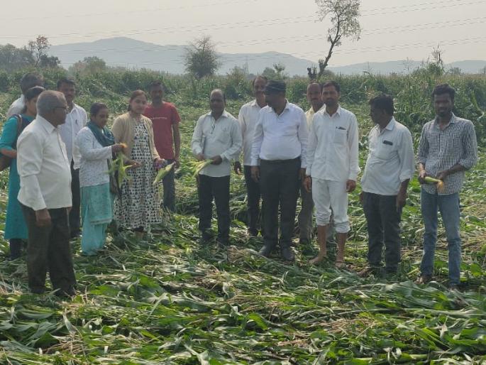 नाशिक : नांदगाव तालुक्यातील काही भागांत अचानक झालेल्या गारपिटीमुळे झालेल्या नुकसानीची पाहणी जिल्हा परिषदेच्या महिला व बालकल्याण समितीच्या सभापती अश्विनी अहेर यांनी केली.नांदगाव तालुक्यात झालेल्या गारपिटीमुळे चांदोरा, पिंपरखेड, जळगाव खुर्द या गावातील शेती पिकांचे काही प्रमाणात नुकसान झाले आहे. या भागातील पाहणी अहेर यांनी केली. यावेळी तहसीलदार जमदाडे यांच्याशीदेखील त्यांनी संपर्क साधला. याप्रसंगी कृषी अधिकारी जगदीश पाटील, सोपान डोखे, कृषी सहायक श्रीमती चव्हाण, तलाठी रिमा भागवत, तालुका युवक कॉँग्रेसचे अध्यक्ष हरेश्वर सुर्वे, शिवराम कांदळकर, प्रताप गरुड, योगेश गरुड, अनिल सरोदे, राजू चाकणकर आदींसह संबंधित गावातील शेतकरीदेखील उपस्थित होते.अचानक झालेल्या गारपिटीमुळे शेतकऱ्यांच्या पिकांचे नुकसान झाले आहे. सदर नैसर्गिक संकट असल्याने शेतकऱ्यांनी निराश, हताश होऊ नये, असे आवाहन त्यांनी यावेळी केले.