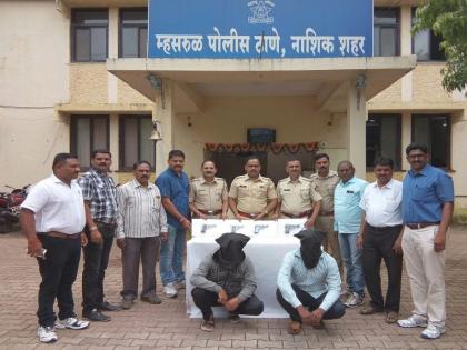 म्हसरूळ पोलिसांनी या दोघांनाही ताब्यात घेतले असून त्यांच्यावर भारतीय हत्त्यार कायद्यान्वये गुन्हा दाखल केला आहे़ ही कामगिरी सहाय्यक पोलीस निरीक्षक रघुनाथ शेगर, हवालदार येवाजी महाले, संदीप भांड, प्रशांत वालझाडे, उत्तम पवार, सोमनाथ शार्दूल, निलेश पवार, गणेश रेहेरे यांनी केली. या पथकाचे पोलीस आयुकत डॉ. रवींद्रकुमार सिंगल, उपायुक्त लक्ष्मीकांत पाटील, सहाय्यक आयुक्त विजयकुमार चव्हाण, वरिष्ठ पोलिस निरीक्षक सुभाषचंद्र देशमुख यांनी अभिनंदन केले आहे़