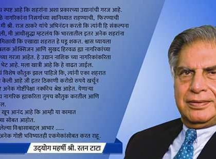 नाशिकच्या नेहरु वनोद्यानाने रतन टाटा यांना घातली होती भुरळ; राज ठाकरे यांना म्हणाले होते, हा तर इनोव्हेटिव्ह प्रोजेक्ट...!