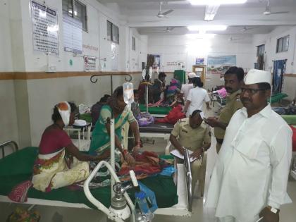 मीराबाई किसन लाखन (४५), चालक किसन सखाराम लाखन (४८), राहुल किसन लाखन (१३), रवीराज किसन लाखन (७ महिने), भीका चिमण गभाले (४५), यमुनाबाई भीका गभाले (४४), महेंद्र नामदेव लोखंडे (२९, रा. काकडवळण), गंगुबाई नामदेव लोखंडे (४५, रा. काकडवळण), निर्मलाबाई जनार्दन बुधर (२५), संगीता तुळशीराम वारणे (३६), पार्वताबाई संजय जाधव (२३), पिंट्या उर्फ श्रेयस जनार्दन बुधर (वर्षे महिने) हे जखमी आहेत तर लक्ष्मण सोनू गि-हे (३३) हो गंभीर जखमी असून त्याच्यावर अतिदक्षता विभागात उपचार सुरू आहेत.