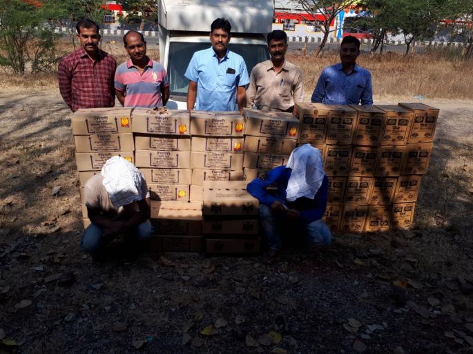 नाशिक : ३१ डिसेंबरच्या पार्श्वभूमीवर राज्यात होणा-या चोरट्या मद्यवाहतूकीस आळा घालण्यासाठी राज्य उत्पादन शुल्क विभागाने तपासणी नाके तसेच भरारी पथके कार्यान्वित केले असून येवला विभागाच्या अधिका-यांनी चांदवड - लासलगाव रस्त्यावरील टाकळी शिवारात सापळा रचून मद्य व वाहनासह अडीच लाखाचा मद्यसाठा जप्त केला आहे़लासलगाव परिसरातून मद्याची चोरटी वाहतूक केली जात असल्याची माहिती येवला विभागाचे निरीक्षक सचिन श्रीवास्तव यांना मिळाली होती. त्यानुसार, पथकाने चांदवड-लासलगाव रस्त्यावरील टाकळी शिवारातील भारत पेट्रोल पंपासमोर सापळा रचला होता़ रस्त्याने जाणाºया संशयास्पद महिंद्रा पीकअप व्हॅनला (एमएच १५ एफक्यु ०३२०) रोखून तपासणी केली असता, त्यामध्ये अवैध मद्यसाठा आढळून आला़ या मद्यसाठ्यामध्ये मॅकडॉवेलच्या (१८० मि.लीच्या) १४४ बाटल्या, देशीदारू भिंगरी संत्राच्या (१८० मि.लिच्या) ११४० बाटल्या, प्रिन्स संत्राच्या (१८० मि.लिच्या) ९६० बाटल्यांचा समावेश आहे़राज्य उत्पादन शुल्कने मद्यसाठा व व्हॅन असा २ लाख ५७ हजार ८४० रुपयांचा मुद्देमाल जप्त केला असून संशयित दीपक बाळू पोतदार (२५, रा. औरंगाबाद नाका, नाशिक), विशाल बाळू नेटावटे (२५, रा. पंचवटी) या दोघांना अटक करून गुन्हा दाखल केला आहे. उप आयुक्त प्रसाद सुर्वे, अधीक्षक सी.बी. राजपूत, उपअधीक्षक गणेश बारगजे यांच्या मार्गदर्शनाखाली निरीक्षक सचिन श्रीवास्तव, वाय. पी. रतवेकर, डी. आर. नेमणार यांच्या पथकाने ही कामगिरी केली़