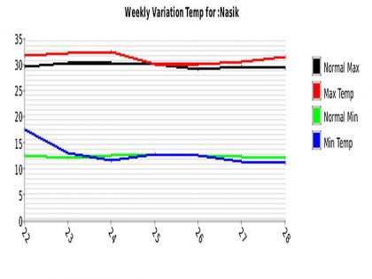 किमान तपमान ११ अंश इतके नोंदविले गेले. एकूणच मागील आठवड्याच्या तुलनेत हा आठवडा अधिक थंड राहिला आहे. गेल्या मंगळवारी शहराचे किमान तपमान १८ अंशापुढे होते.