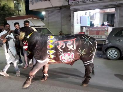 Diwali: बलिप्रतिपदेनिमित्त आज नाशिक शहरातील पंचवटीसह अन्य गावठाणात परंपरेनुसार यंदाही ढोल ताशांच्या गजरात आणि फटाक्यांची आतषबाजी करून रेड्यांची सवाद्य मिरवणूक काढण्यात आली.
