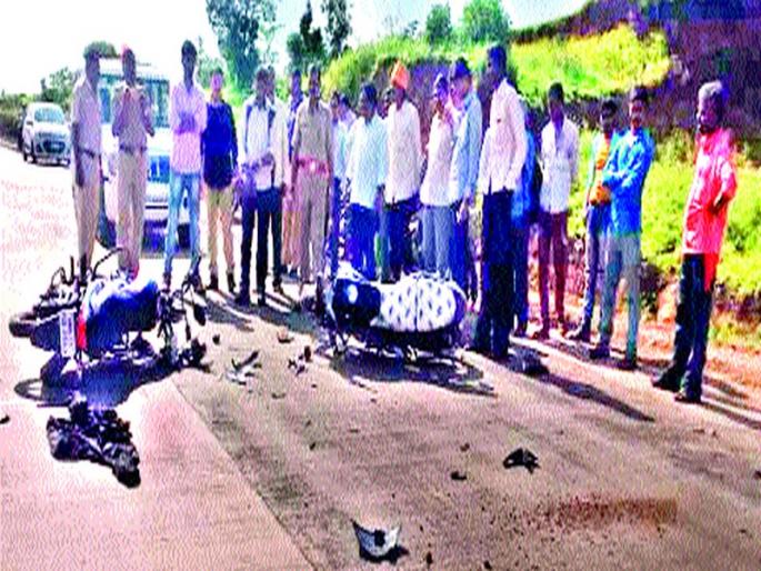पेठ : नाशिक-पेठ राष्ट्रीय मार्गावरील पेठ शहराजवळील शनिमंदिर परिसरात दोन मोटरसायकलींची समोरासमोर धडक होऊन झालेल्या अपघातात एक जण ठार, तर दोन गंभीर जखमी झाले. पंचवटीतील शिवाजी चौकातील जितेंद्र चंद्रकांत कोडीलकर हे आपला भाचा शुभम देवरे समवेत नाशिकहून वापी ( गुजरात) येथे जाण्यासाठी ड्रिमयुगा मोटरसायकलने (क्र . एमएच १५जीडी ०८९३) जात असताना पेठपासून २ किमी अंतरावरील जाधव पाडाजवळ पेठकडून नाशिककडे जाणारी पेठ उस्थळे येथील विजय हिरामण पाडेकर (२३) व रोहिदास त्र्यंबक भोये(२४) यांची मोटरसायकल पल्सर कमांक- एमएज.१५ सीक्यु ७६०५ यांची समोरासमोर धडक झाली. या प्रकरणी पेठ पोलीस ठाण्यात अपघाताचा गुन्हा दाखल झाला असुन पोलीस निरिक्षक लिलाधर कानडे यांच्या मार्गदर्शनाखाली सहाय्यक पोलीस उपनिरिक्षक विजय साळी पुढील तपास करीत आहेत .