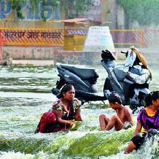 वा.. थंडगार.. गेल्या काही दिवसांपासून उन्हाच्या उकाड्याने नाशिककर हैराण झालेले असताना गोदावरीला आज पाणी सोडण्यात आले. त्यामुळे थंडगार पाण्यात बसून उकाड्यापासून सुटकेचा आनंद घेताना मुली.