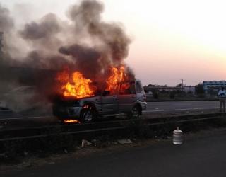 नाशिक : तळेगाव शिवारात आगीत स्कॉर्पिओ खाक