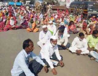 नाशिक : शेतकरी, कामगारांनी रोखला रस्ता; नाशिक-त्र्यंबकेश्वर मार्गावर तासभर ठिय्या