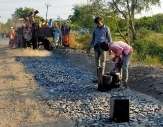 नाशिक : दिंडोरीतील रस्ता दुरुस्तीचे अखेर काम सुरू