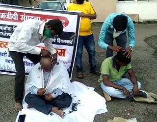 नाशिक : इगतपुरी तहसिल कार्यालयासमोर मुंडन आंदोलन