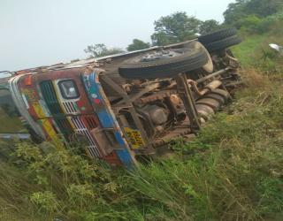 महामार्गावरून चोरट्यांनी लुटलेला ट्रक मुंगसऱ्यात उलटला