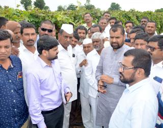 खेडगावी नुकसानग्रस्त द्राक्षबागांची शरद पवार यांच्याकडून पाहणी