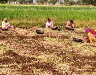 कांदा काढणीसाठी मिळेना मजूर