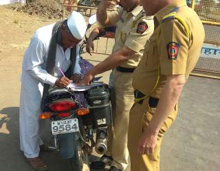 नाशिक : मुखेडफाटा येथे विनाहेल्मेट दुचाकीस्वारांवर कारवाई