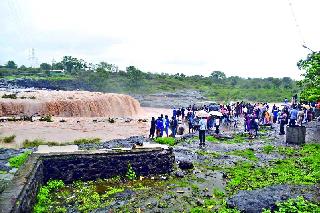 जलप्रपात पाहण्यासाठी उसळली गर्दी :