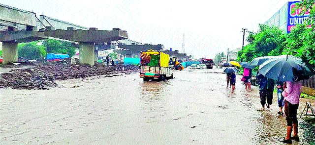 ठळक मुद्देरस्त्यावर पाणी : सर्व्हिसरोडवर वाहतूक ठप्प