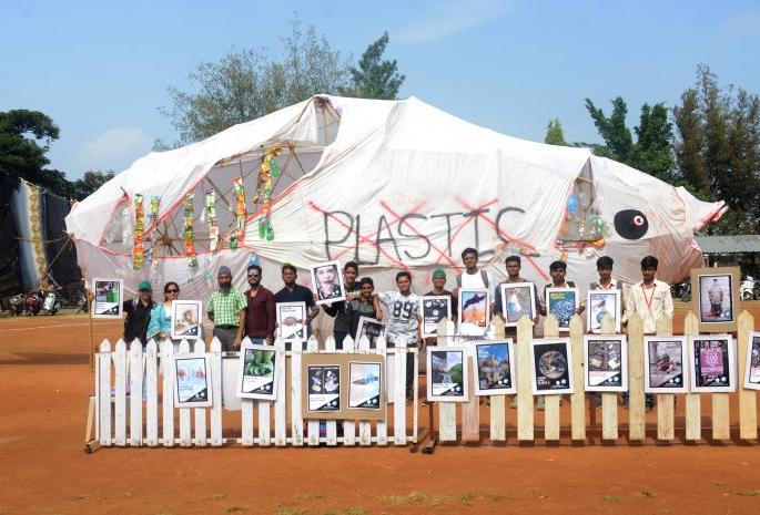 जनजागृती करण्यासाठी मानव उत्थान मंचतर्फे ५५ फुट लांब व २० फुट रुंद अशा व्हेल माशाची प्रतिकृती साकारुन त्यावर प्लॅस्टिकच्या बाटल्या, खाद्यपदार्थाचे रॅपर व इत्यादी घातक प्लॅस्टिक लटकविण्यात आले होते