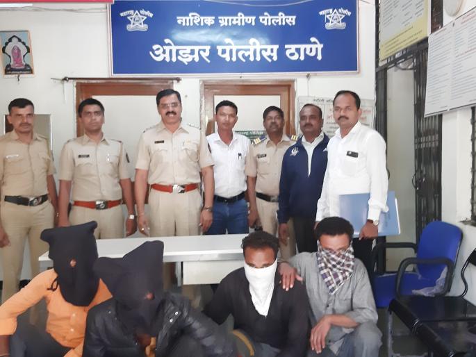 ओझर पोलिसांनी या प्रकरणी छोटू उर्फ रिफक जाफर कुरेशी रा वडाळा नाशिक,नितीन मधुकर बंदरे रा. मातंगवाडा ओझर, हुसेन हनिफ कुरेशी रा. साठेनगर वडाळा नाशिक,नजीब इकबाल मंसुरी रा. द्वारका नाशिक यांना अटक केली आहे. त्यांच्यावर गुन्हा दाखल केला आहे . या छाप्यामध्ये पोलीस उपअधीक्षक अरु ंधती राणे,पोलीस निरीक्षक भगवान मथुरे सहाय्यक पोलीस निरीक्षक नितीन पाटील,उपनिरीक्षक अजय कवडे व इतर पोलीस सहभागी झाले होते.आरोपींना पिंपळगाव न्यायालयात हजर केले असता न्या.हुरगट यांनी त्यांना दोन दिवसांची पोलीस कोठडी सुनावली आहे.पुढील तपास ओझर पोलीस करीत आहे.