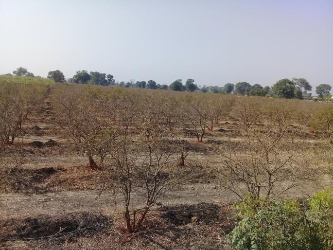 पाण्याअभावी सुकून चाललेली डाळिंब बाग.