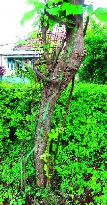 नाशिक : शहरात विविध रस्त्यांच्या कडेला किंवा मोकळ्या भुखंडांवर पाच ते दहा वर्षांपूर्वी लावण्यात आलेल्या वृक्षांभोवतालच्या संरक्षक जाळ्या थेट झाडांच्या बुंध्यात रुतल्या आहेत. याकडे महापालिकेच्या उद्यान विभागाचे लक्ष वेधण्यासाठी नाशिकरोडच्या काही तरुणांनी एकत्र येत झाडांच्या संरक्षक जाळ्यांमुळे वृक्षांची झालेली स्थिती कॅमेऱ्यात बंदिस्त केली आहे.रोपट्याचे संवर्धनासाठी महापालिकेने संरक्षक जाळ्या बसविल्या. झाडांची संपूर्ण वाढ झाल्यानंतर झाडांभोवती लावलेल्या संरक्षक जाळ्या काढून घेणे अपेक्षित आहे; मात्र याकडे उद्यानविभागाने नेहमीप्रमाणे डोळेझाक केली आहे. यामुळे झाडांचा जीव संकटात सापडला असून, या हृदय हेलावणारी अवस्था नाशिकरोड पर्यावरण समितीच्या पदाधिकाऱ्यांनी कॅ मेऱ्यात बंदिस्त केली आहेत. सुमारे पंचवीस ते तीस छायाचित्रे नाशिकरोड, उपनगर परिसरातील असून, सदर छायाचित्रांचे अल्बम समितीकडून उद्यान विभागप्रमुखांना भेट दिला जाणार असल्याची माहिती उपक्रमप्रमुख प्रसाद देशमुख यांनी दिली.संरक्षक जाळ्यांमुळे झाडांच्या बुंध्यांना इजा होत असून, झाडांच्या वाढीला अडथळा निर्माण होऊन त्यांचे आयुष्य संपुष्टात येण्याचा धोका निर्माण झाला आहे. बहुतांश ठिकाणी झाडांच्या बुंध्यांमध्ये संरक्षक जाळ्या पूर्णपणे रुतून गेल्या आहेत. सदर वृक्ष ही किमान पाच ते दहा वर्षे जुने असून, याकडे पालिकेच्या उद्यान विभागाला लक्ष देण्यास अद्याप मुहूर्त लाभलेला नाही किंंवा वृक्ष प्राधिकरण समितीनेदेखील सदर बाब संबंधित अधिकाऱ्यांच्या निदर्शनास आणून दिलेली नाही हे विशेष! (प्रतिनिधी)